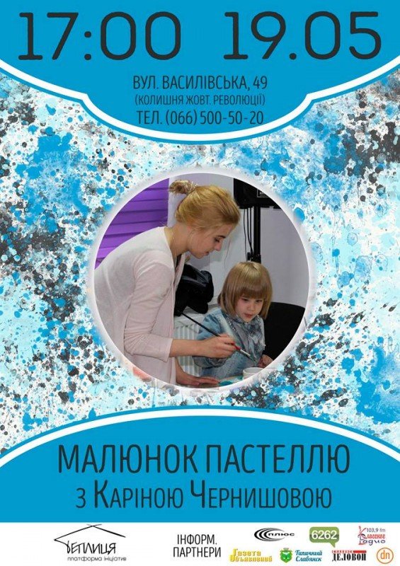 Художня майстерня з Каріною Чернишовою, малюнок пастеллю. З собою мати: пастель та пастельный аркуш (обов'язково). Реєстрація обов'язкова за н. тел. (066) 500-50-20