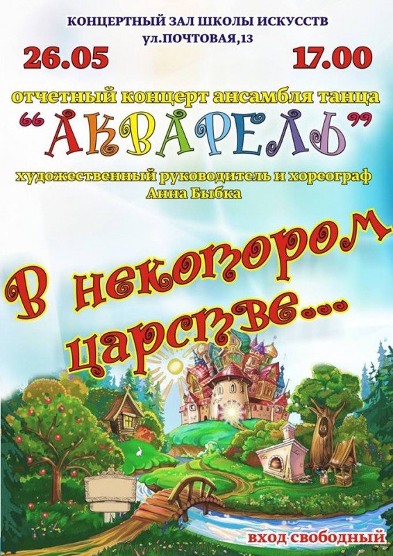 26 мая в 17:00 ансамбль танца "Акварель" приглашает на отчетный концерт! Готовьте ладоши и хорошее настроение!