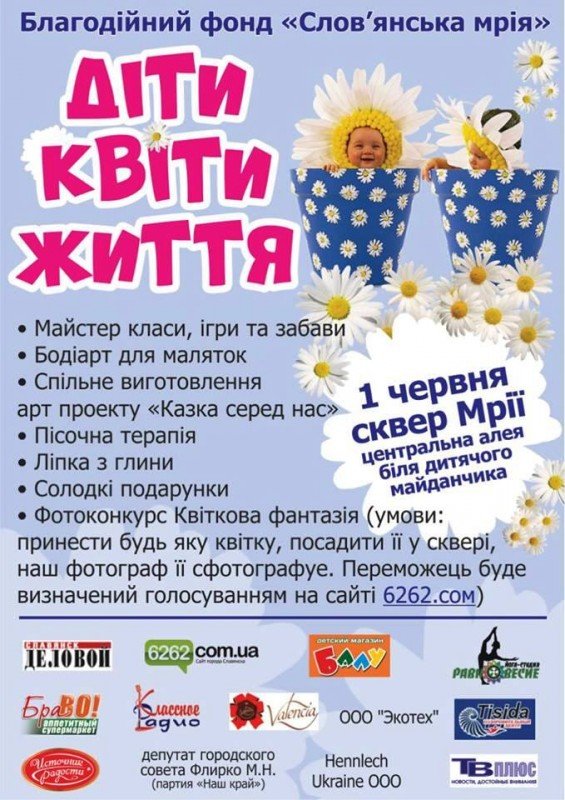 Фотоконкурс "Квіткова фантазія"(умови: принести будь-яку квітку, посадити її у сквері, наш фотограф її сфотографуе. Переможець буде визначений голосуванням на сайті 6262.com.ua)