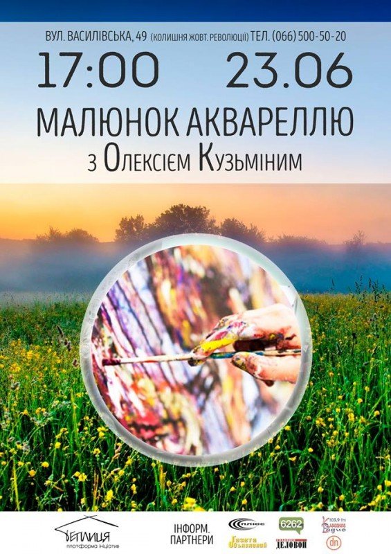 Художня майстерня з Олексієм Кузьміним, малюнок аквареллю. З собою мати: акварель та пастельный аркуш (обов'язково). Реєстрація обов'язкова за н. тел. (066) 500-50-20