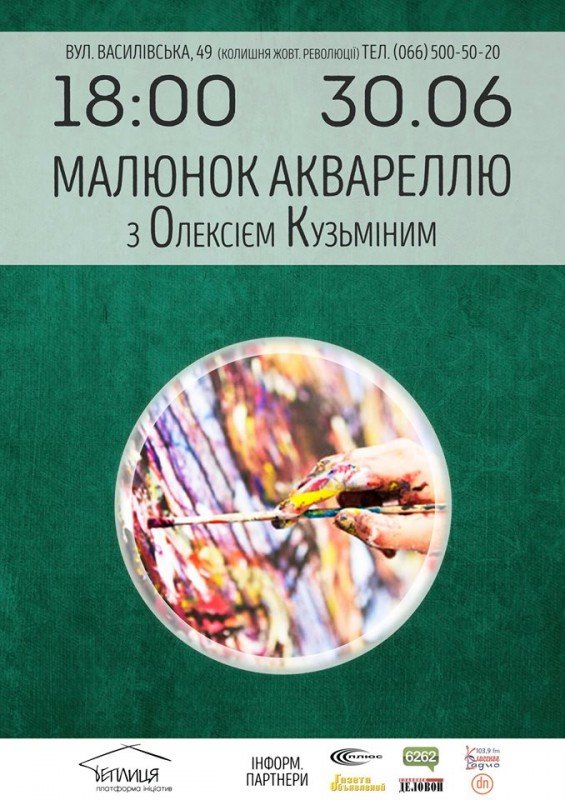 Художня майстерня з Олексієм Кузьміним, малюнок аквареллю. З собою мати: акварель та пастельный аркуш (обов'язково). Реєстрація обов'язкова за н. тел. (066) 500-50-20