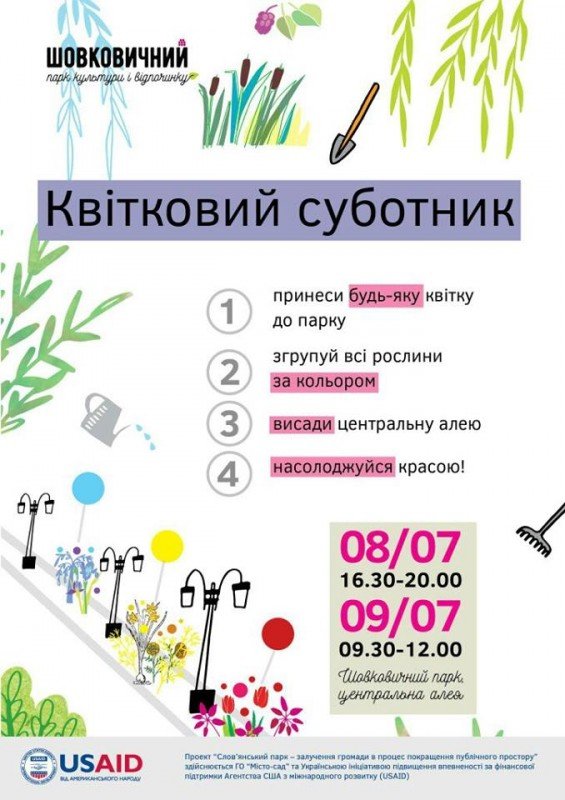 8 липня з 16.30 до 20:00 жителі Слов’янська запрошуються приносити до парку будь-які квіти, які будуть розподілені за кольорами і висаджені на центральній алеї парку.