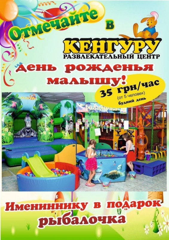 Детский развлекательный комплекс Кенгуру, который находится в самом центре города на площади Соборной,9  (ТД Юбилейный,второй этаж) приглашает Вас отметить день рождения или любой другой праздник! Ждём Вас и Ваших деток! Веселье и кучу позитива-гарантируем.