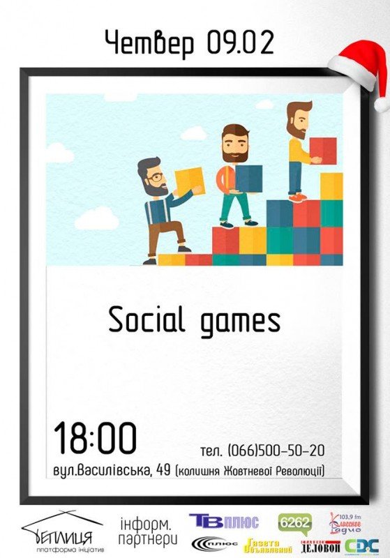 Social Games. Лекції та практичні заняття у формі ігор, які допоможуть розвивати такі компетенції, як вміння працювати в команді та комунікабельність й посприяють саморозвитку кожного з учасників та волонтерського товариства Теплиці у цілому.