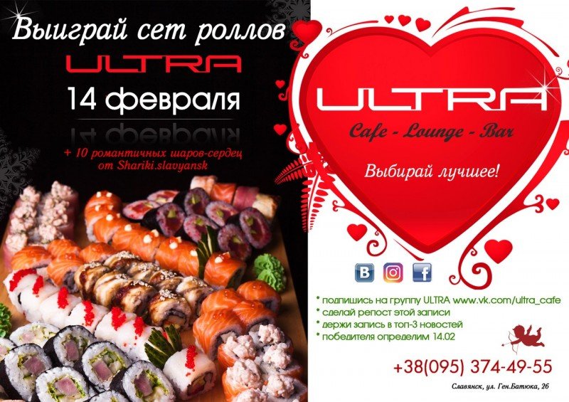 И предлагаем ВЫИГРАТЬ сет ULTRA - роллов в День Всех Влюбленных