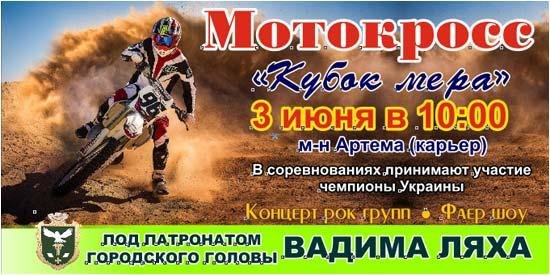 3 июня 2017 года, в городе Славянске, Донецкой области, состоятся соревнования по мотокроссу на Кубок мэра города. Место проведения: м-н Артема, карьер.