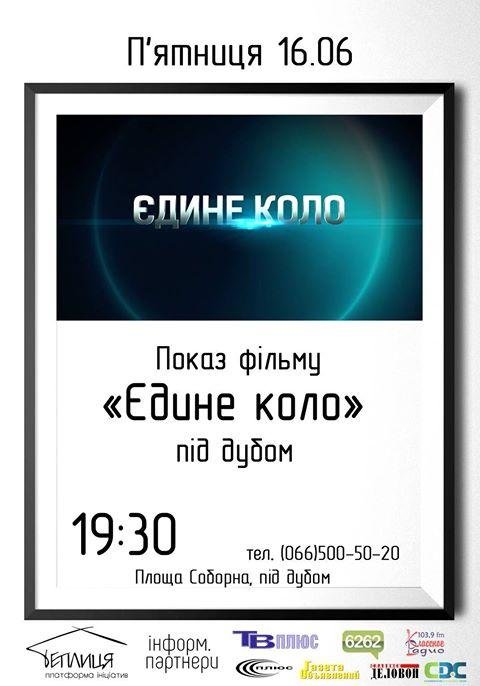 16 червня о 19.30, на Соборній площі Слов’янська під дубом – перед-прем’єрний показ фільму «Єдине коло». Запрошуємо дивитися, надихатися й спілкуватися. Вхід вільний!