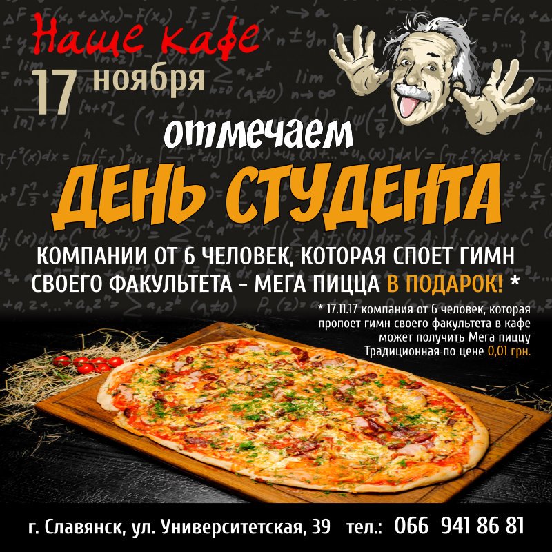 В "Нашем кафе" отмечаем "День Студента"  по адресу: Славянск, ул.Университетеская, 39.
