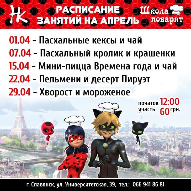 "Школа маленьких поваров" в "Нашем кафе" ждет Вас и ваших деток по адресу: Славянск, ул.Университетеская, 39 на мастер классы в апреле!