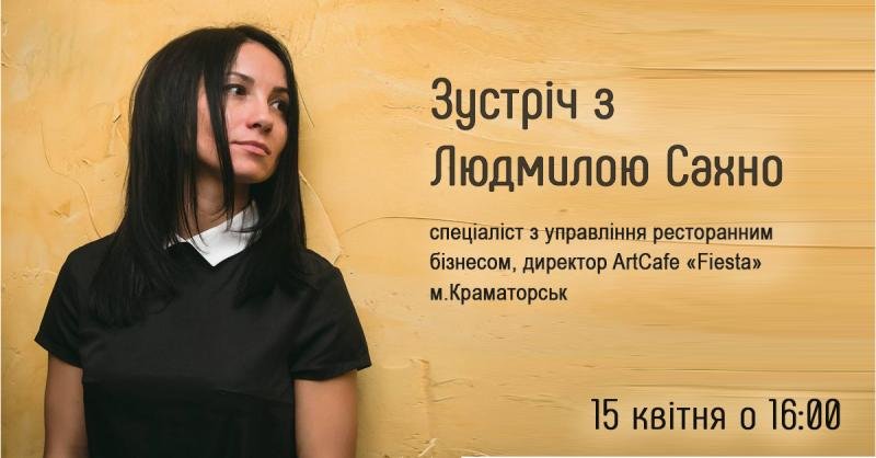 Запрошуємо власників ресторанного бізнесу, всіх хто пов’язан з сферою обслуговування та організацією заходів, людей які тільки починають свій бізнес та всіх охочих на зустріч з Людмила Сахно - спеціалістом з управління ресторанним бізнесом, директор ArtCafe Fiesta Кейтеринг Краматорск