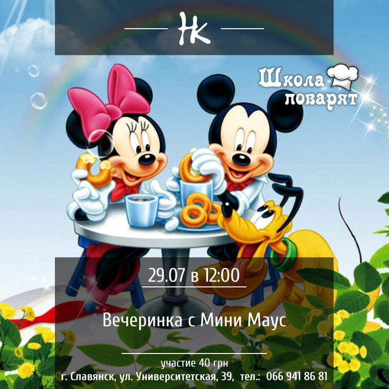 "Школа маленьких поваров" в "Нашем кафе" ждет Вас и ваших деток по адресу: Славянск, ул.Университетеская, 39. Приглашаем на вечеринку с "Мини Маус.