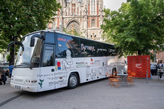 Platform for Cultural Initiatives., створений у співпраці з U.S. Embassy Kyiv Ukraine. Це звичайний пасажирський автобус, який у межах проекту був перетворений у мобільний культурний центр.