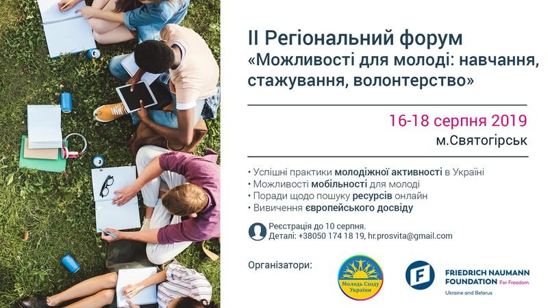 На ці та інші питання будемо спільно шукати відповіді під час ІІ Регіонального Форуму «Можливості для молоді: навчання, стажування, волонтерство», що проходитиме в м. Святогірську з 16 по 18 серпня 2019 року.