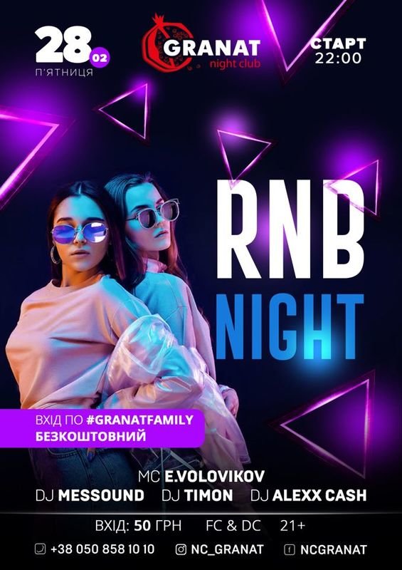 Ночной клуб «Granat», 28 февраля, приглашает всех на RNB вечеринку!