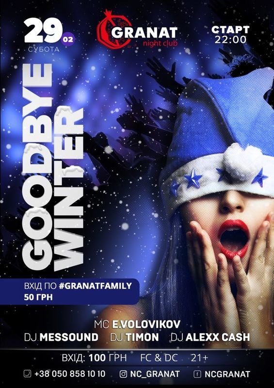 Ночной клуб «Granat» приглашает всех на прощальную вечеринку зимы «Goodbye Winter».