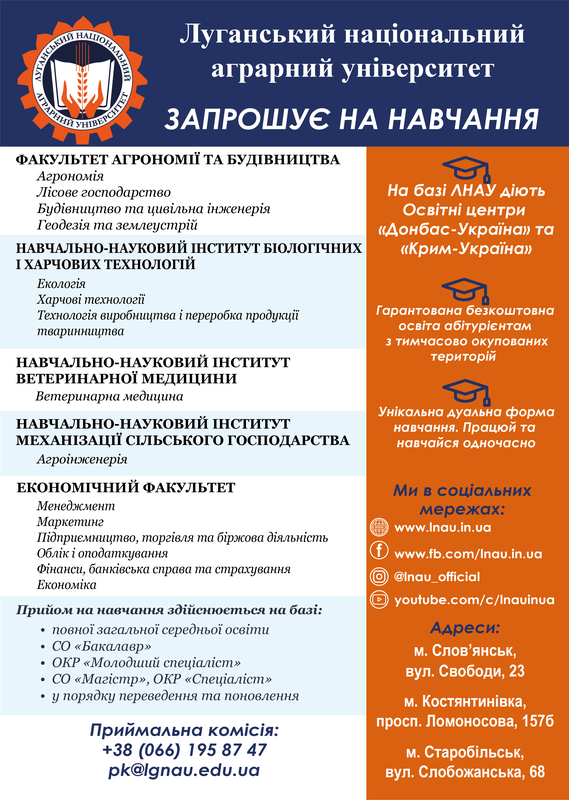 Луганський національний аграрний університет - ЗАПРОШУЄ НА НАВЧАННЯ!