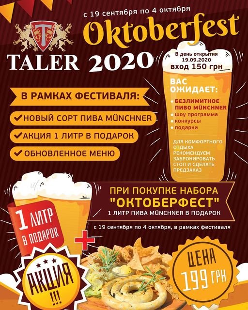 Старт нового сезона с 19.09.20 Фестиваль «Октоберфест 2020» + акция!