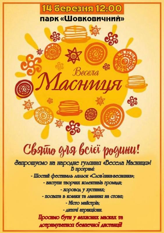 14 березня 2021 року у парку "Шовковничому" відбудеться святкування "Веселої Масниці"!