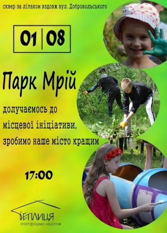 • Долучаємось до місцевої ініціативи, зробимо наше місто кращим, вирушаємо в «Парк Мрій». Будемо облаштовувати парк разом.