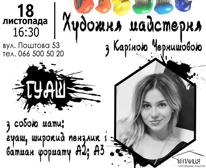 Візьміть з собою, будь ласка: гуаш, білий колір обов'язково, широкий пензлик, а також аркуш ватману формату А3.