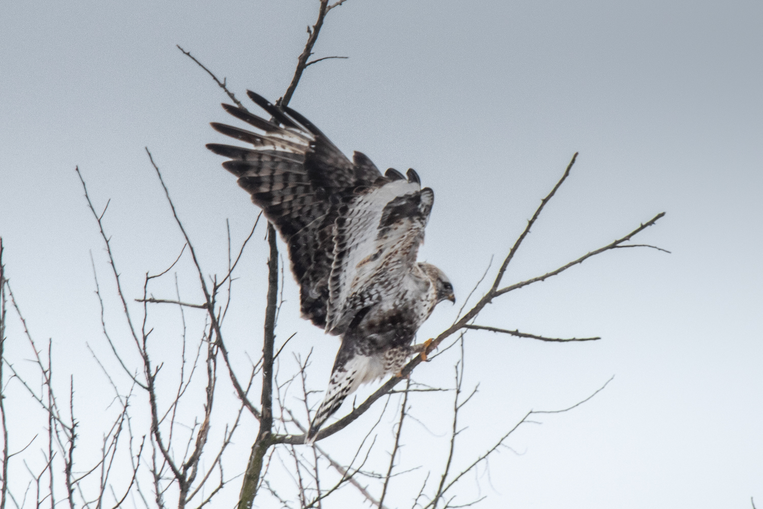 Синички — это хорошо, но ехал то я не за ними, и попытка сфотографировать близко канюка продолжилась. Вдалеке заметил силуэт хищной птицы и начал медленно приближаться, с каждым подходом делая снимок.