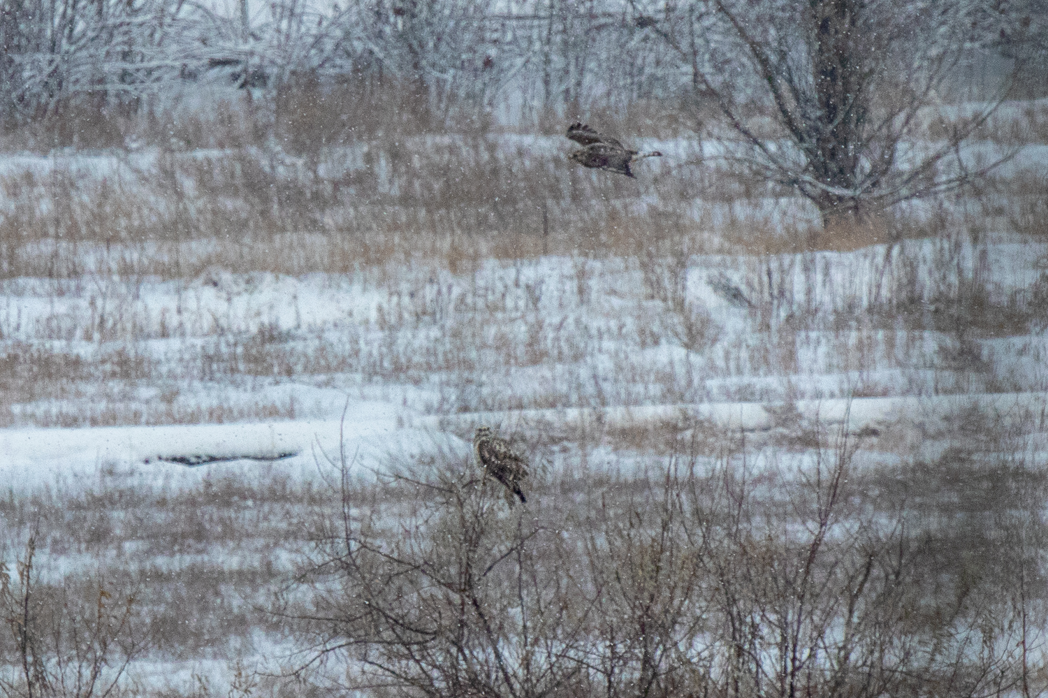 Я увидел два ворона, а рядом с ними обнаружил канюка, но подойти ближе не смог, птицы улетели.