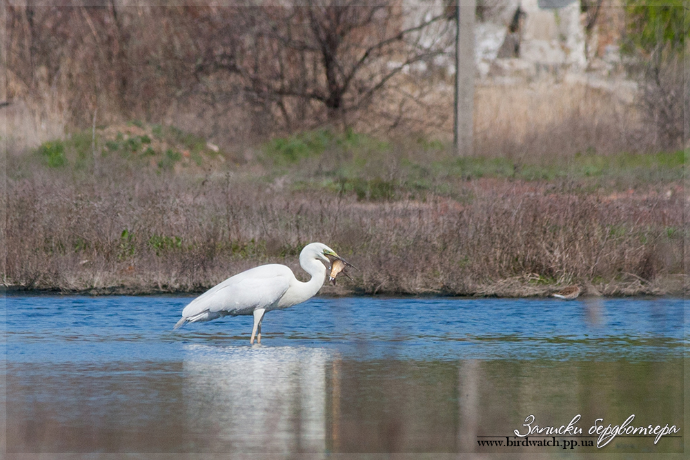 Когда соперников нет то можно приступить к рыбной ловле, а в этом цапли настоящие мастера.