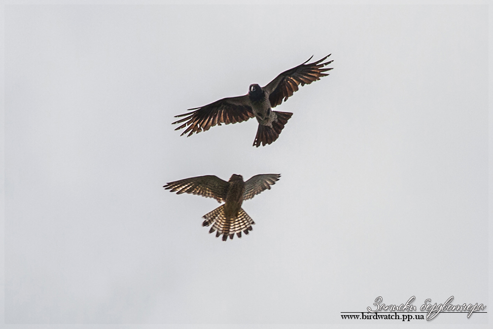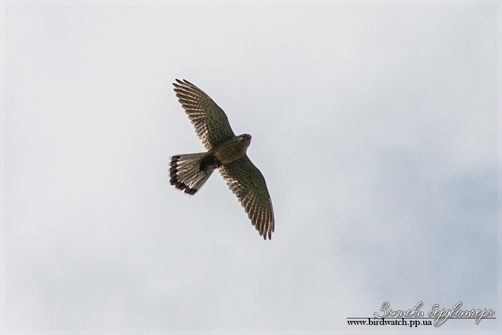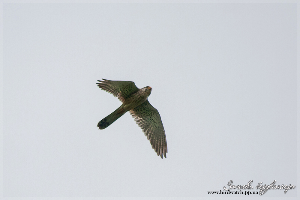 Пока отвлекся на зеленушку, которая пела на кустарнике и менял настройки камеры, над головой пролетел еще один хищник. Сменить настройки не успел, потому фото вышло смазанным. Как позже оказалось это был ястреб коротоногий (Дякую Микола Скирпан за визначення виду).