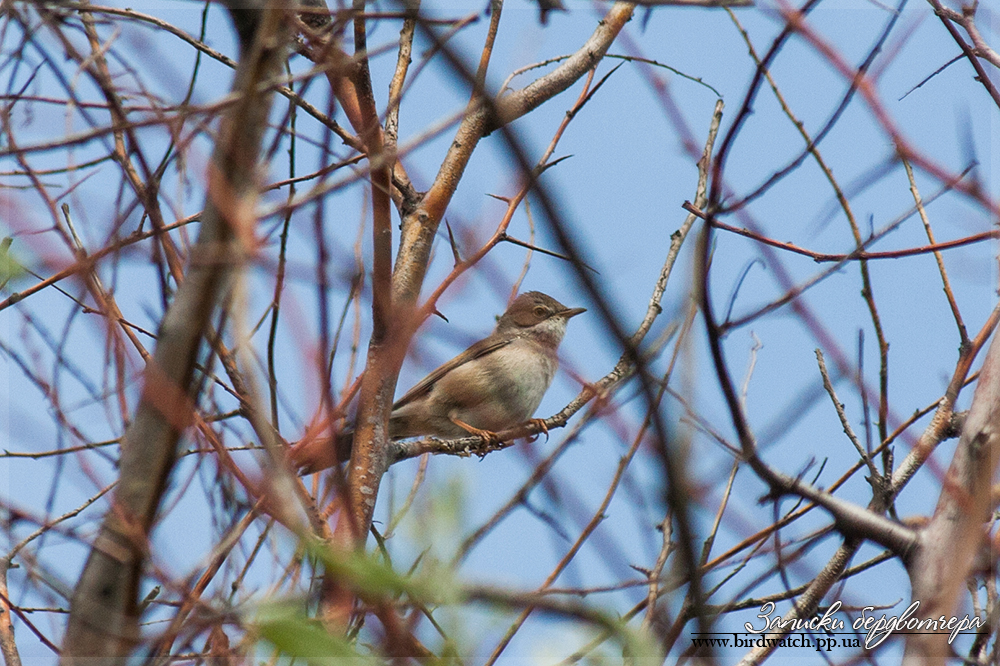 14 мая. Хорошая погода, солнечно. На этот день было много планов и хотелось все успеть. Прогулку начал с карьера за хлебозаводом. Первое, что привлекло внимание-это громкое пение. Присмотревшись заметил славку.