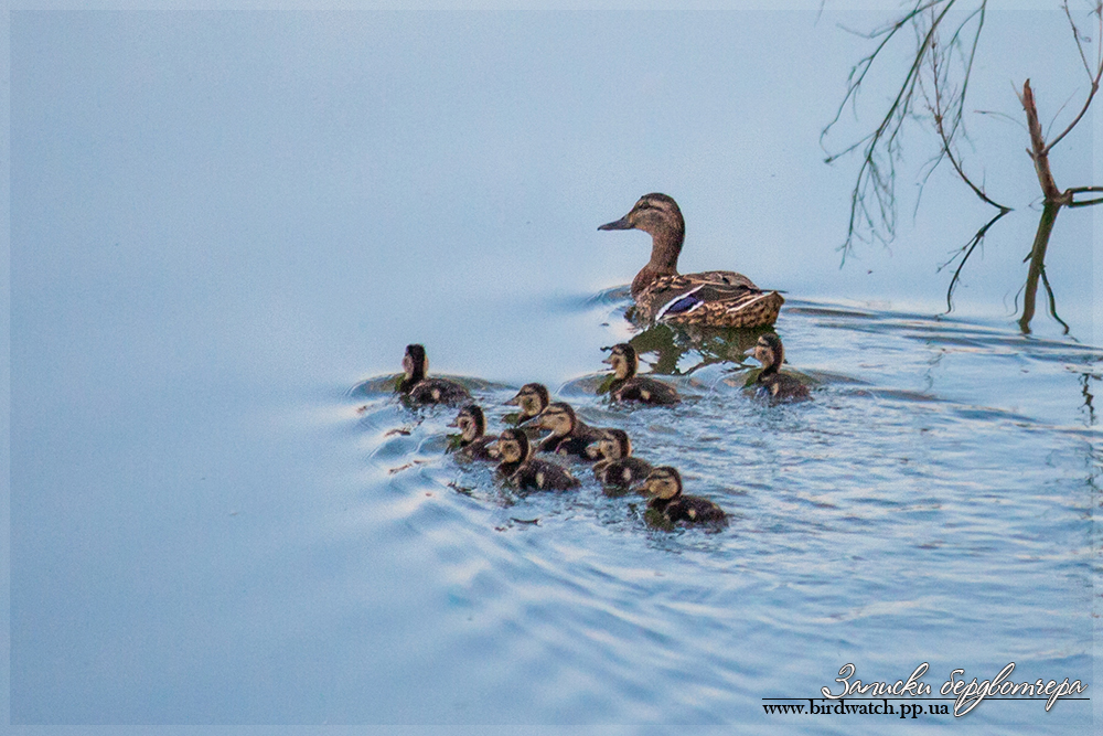 Проходя через карьер за Хлебозаводом, повстречал крякву с утятами.