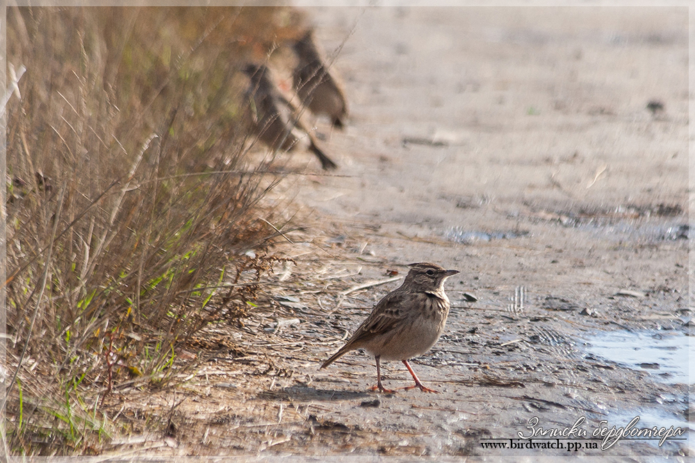 Славянский курорт богат на пернатых в любое время года и при любой погоде, потому выбор места прогулки был очевиден. Приехал и сразу же мое внимание привлекли серые птички, бегавшие вдоль дороги. Большинство прохожих на них просто не обращают внимание, считая, что это обычные воробьи. Но это не они, а хохлатый жаворонок. В отличии от тех же воробьев, он не прыгает, а быстро бегает по земле и имеет отличительную черту в виде хохолка на голове. Кстати в Беларуси он объявлен птицей 2017 года.