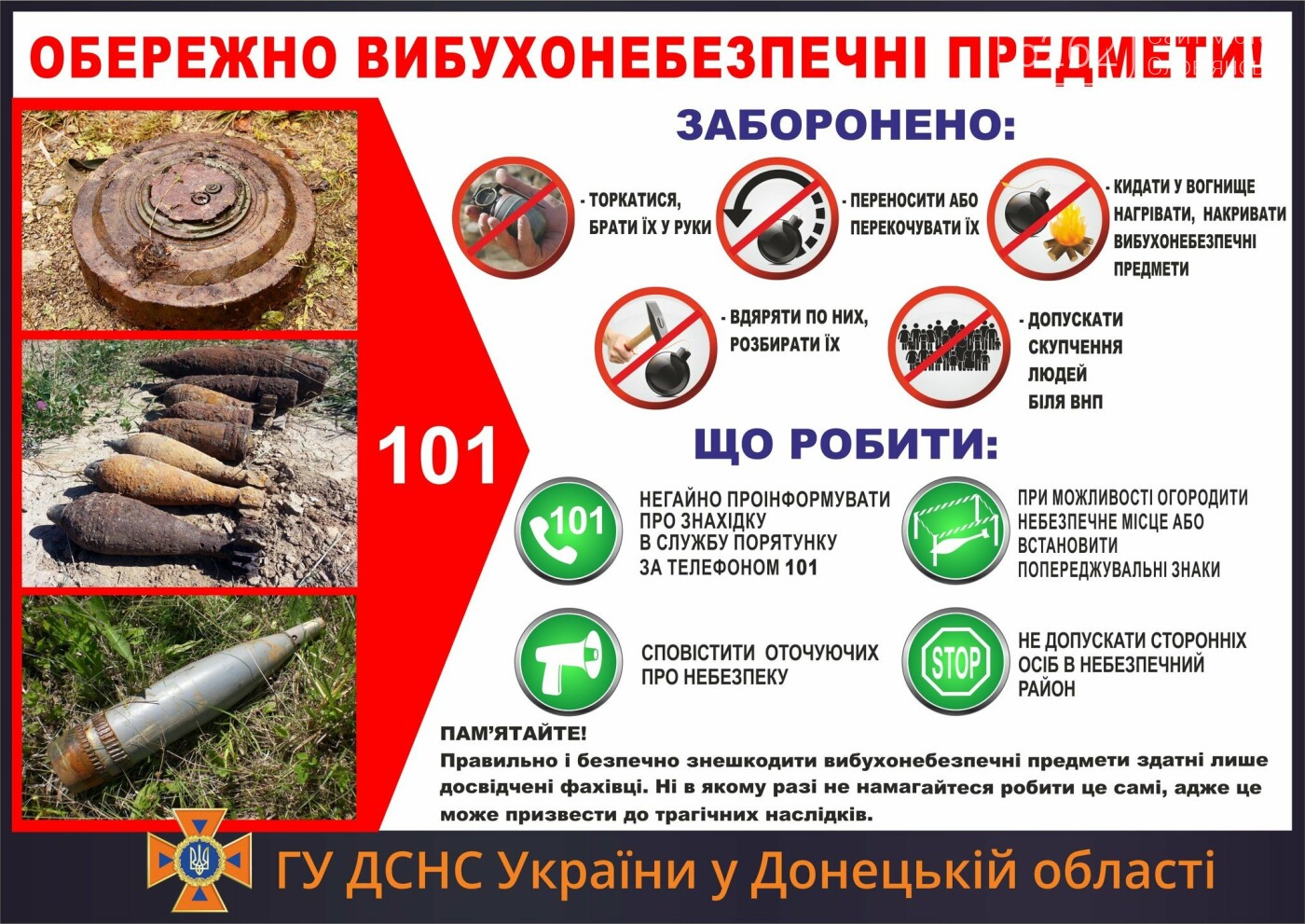 Рятувальники Донеччини закликають громадян бути обережними при виявленні підозрілих предметів