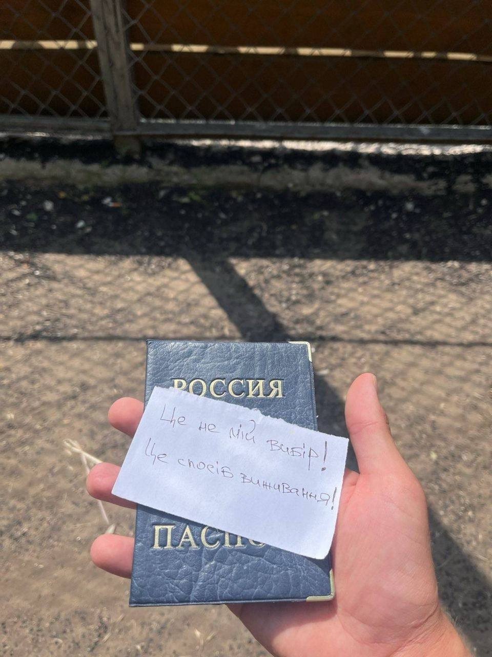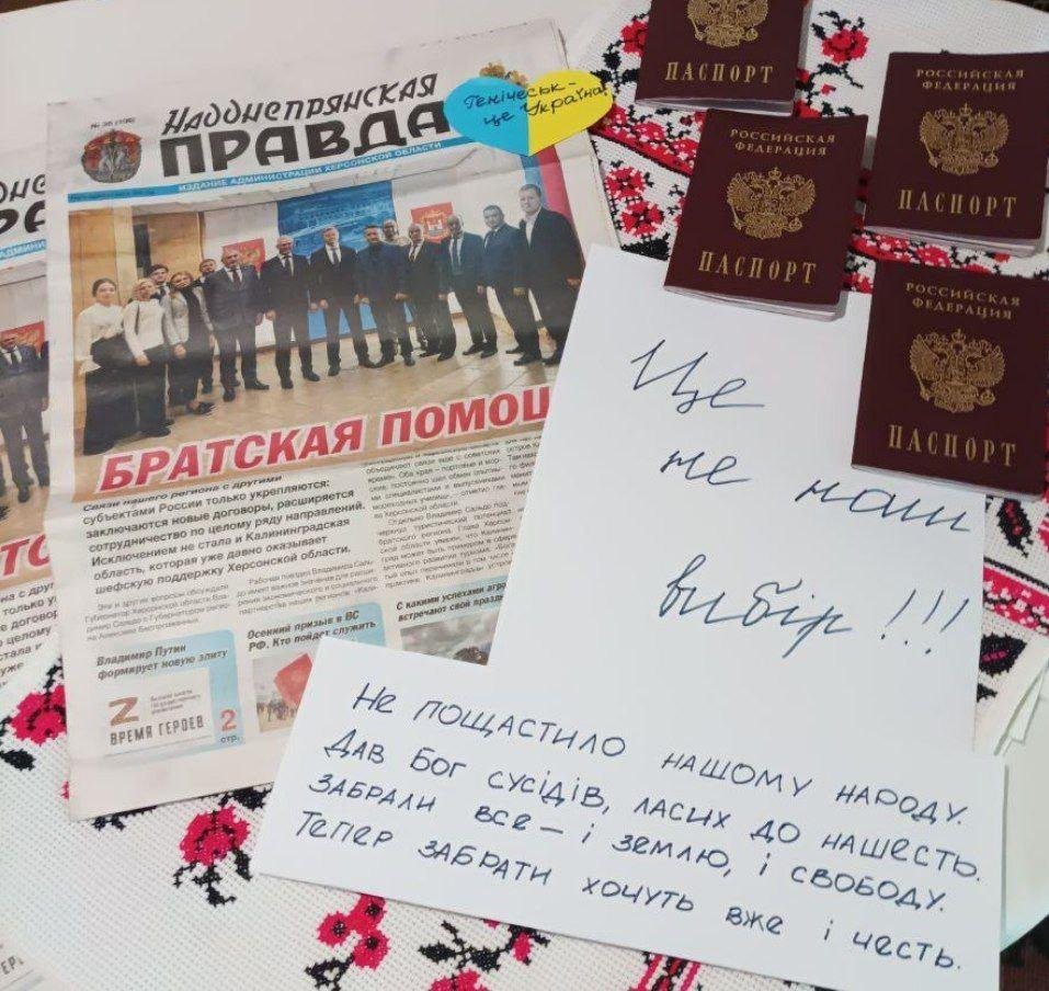 "Російський паспорт - це шрам від окупації. Це ніколи не було вибором. Ми чекаємо день, коли ми зможемо викинути примусово оформлені російські паспорти на помійку історії, та наближаємо цей день як можемо", - заявляють учасники руху опору.