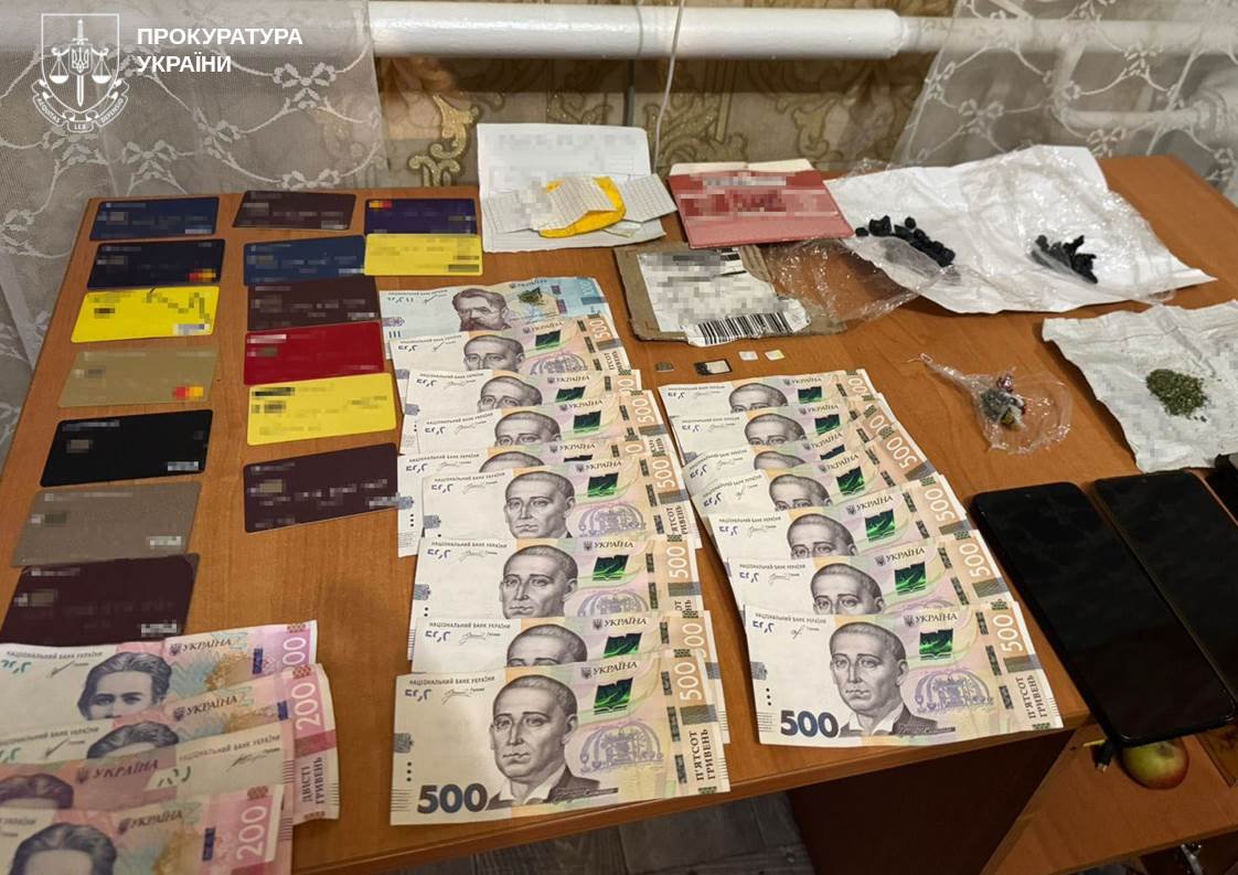 Під час санкціонованих слідчим суддею обшуків за місцями проживання підозрюваних та у їхніх транспортних засобах вилучили грошові кошти, наркотичні засоби, мобільні телефони та банківські картки.