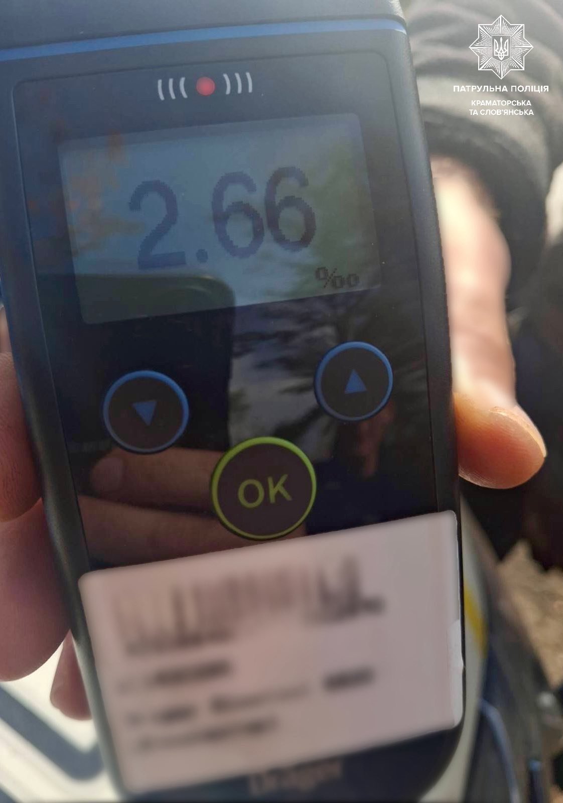Перевірка підтвердила підозри поліцейських: алкотестер показав 2,66 проміле алкоголю в крові. Цей показник перевищує допустиму норму 0,2 проміле у 13 разів.
