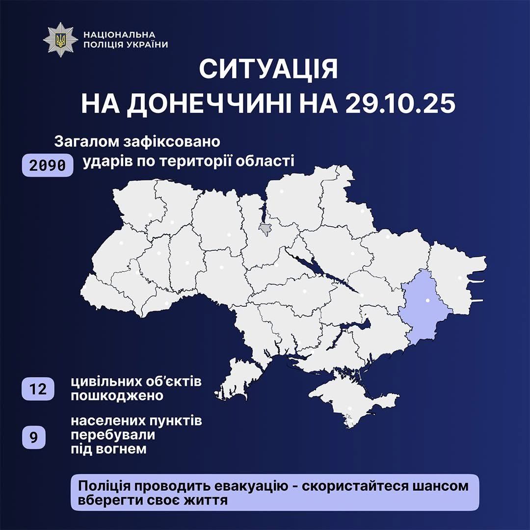 За 28 жовтня поліція зафіксувала 2090 ударів росії по лінії фронту та житловому сектору.