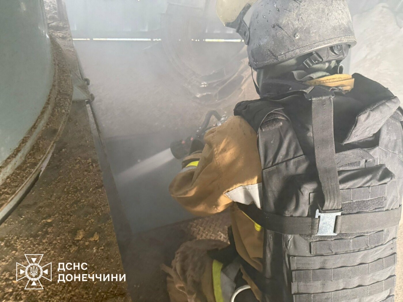 Удар спричинив виникнення двох осередків загоряння. Вогонь охопив гараж, складську будівлю та п'ять автомобілів. Рятувальники ліквідували першу пожежу площею 80 квадратних метрів. Другий осередок загоряння площею 400 квадратних метрів вдалося локалізувати, проте завершити гасіння не змогли. Причиною стала загроза повторних обстрілів з боку ворога.