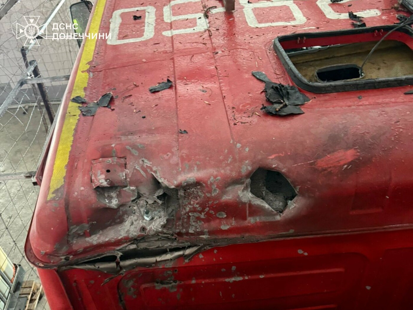 Від атаки постраждала пожежна автоцистерна. Люди, на щастя, залишились неушкодженими. Але роботи довелось зупинити – продовжувати небезпечно для життя.