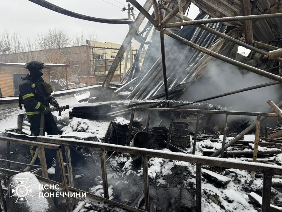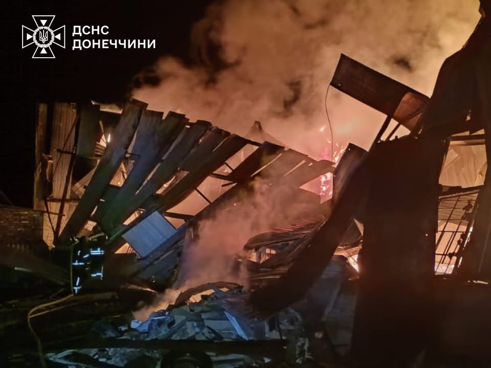 За даними ДСНС Донеччини, минулої ночі внаслідок російського обстрілу в Слов'янську загорівся ангар.