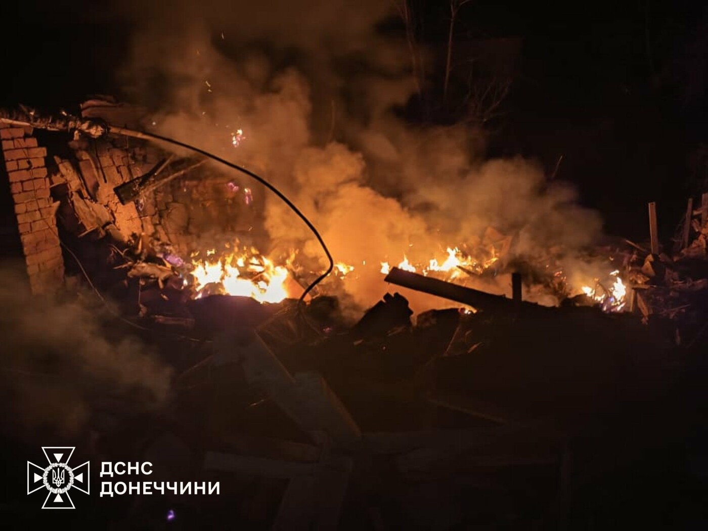 Вночі ворог завдав удару по приватному сектору Слов'янська. Через обстріл виникла пожежа: горіли зруйновані будівельні конструкції та уламки. Рятувальники ліквідували загоряння на площі 15 кв. м.
