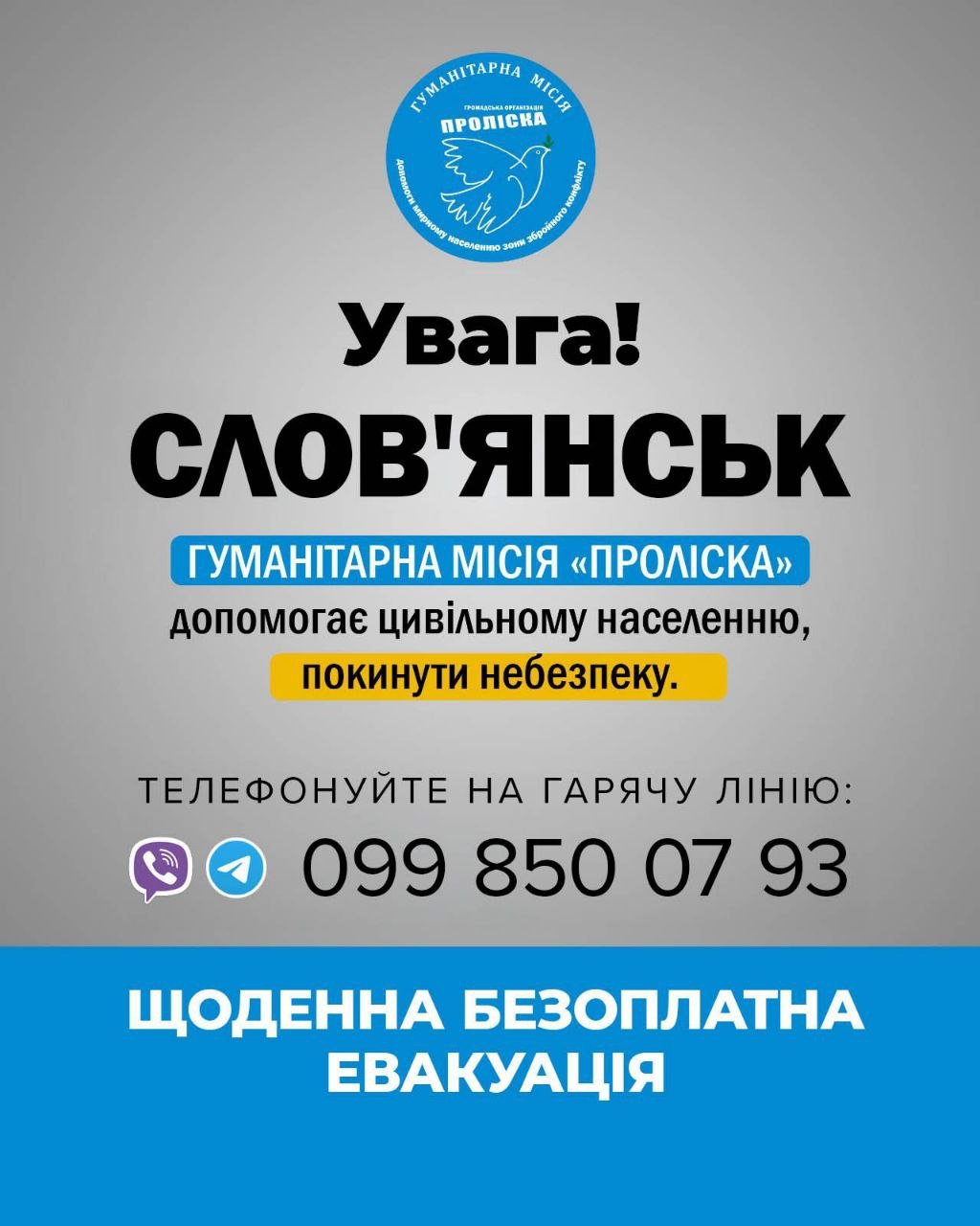 Організація здійснює щоденні евакуаційні рейси для цивільного населення Слов'янської громади.