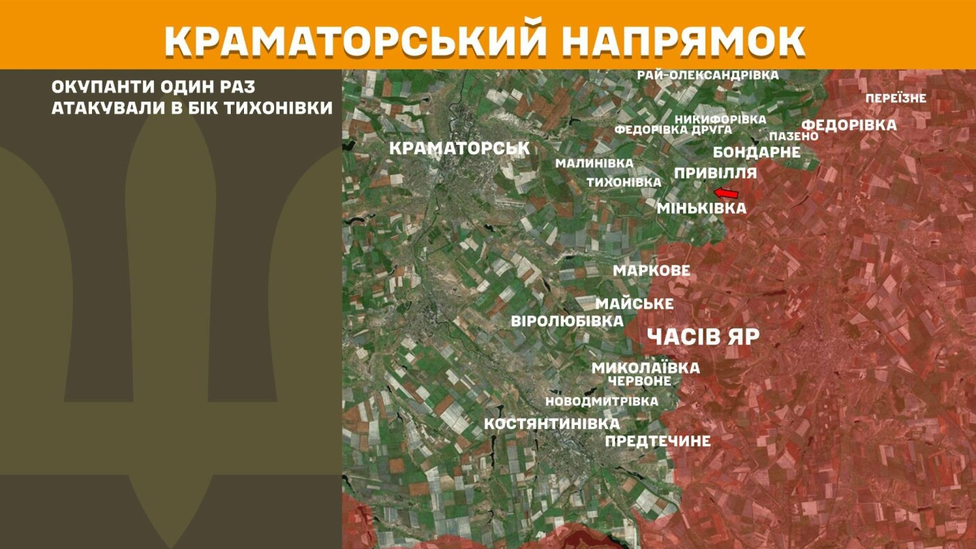 На цій ділянці активність противника за добу була мінімальною. Зафіксовано одну атаку в бік Тихонівки.