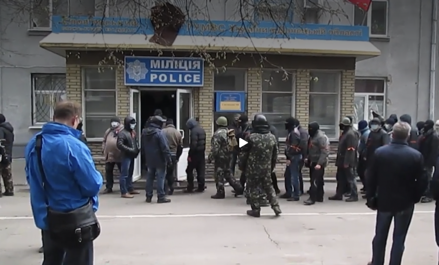 Вранці 12 квітня 2014 року події у Слов’янську перейшли у відкриту фазу. Міський відділ міліції захопили озброєні люди в масках і камуфляжі. Вони були озброєні автоматами та пістолетами, зайняли позиції по периметру будівлі та не підпускали цивільних ближче ніж на 50 метрів.