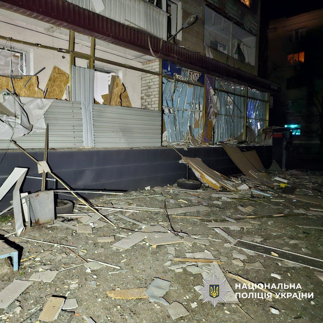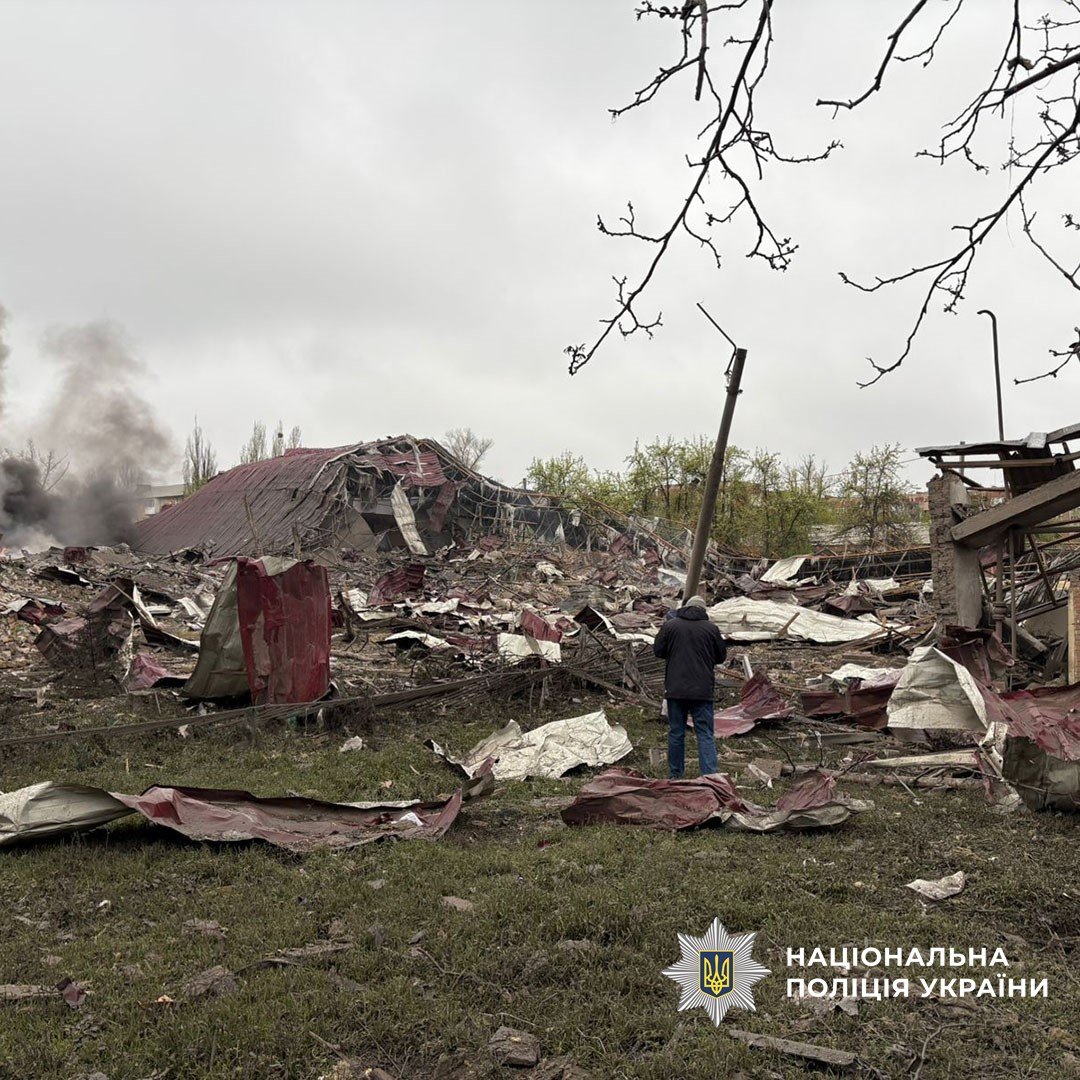 О 05:50 21 квітня ворог скинув на житловий квартал бомбу вагою півтори тонни. Унаслідок удару поранення отримали троє цивільних — подружжя 68 років та їхній 36-річний син. Зруйновано заклад освіти. Пошкоджено 15 багатоквартирних і 2 приватних будинки, 2 аптеки, 3 магазини, нотаріальну контору, салон краси.