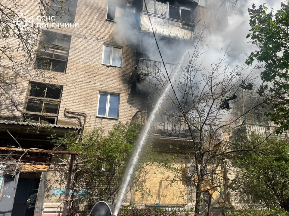 Пожежа на балконах багатоповерхівки у Слов'янську: рятувальники кілька разів ховалися в укриття (ФОТО)