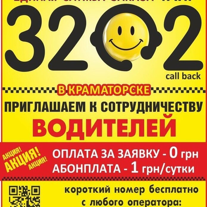 Единая служба заказа такси 3202 приглашает к сотрудничеству водителей для работы в г.Краматорск. Мы предлагаем Вам самые выгодные условия работы: свободный график ,максимальное количество заказов . Опытные диспетчера-логисты полностью обеспечивают Вас заказами. Для профессиональных таксистов - наилучшие условия работы! Присоединяйся к нашей команде и получи самые выгодные условия работы уже сейчас!